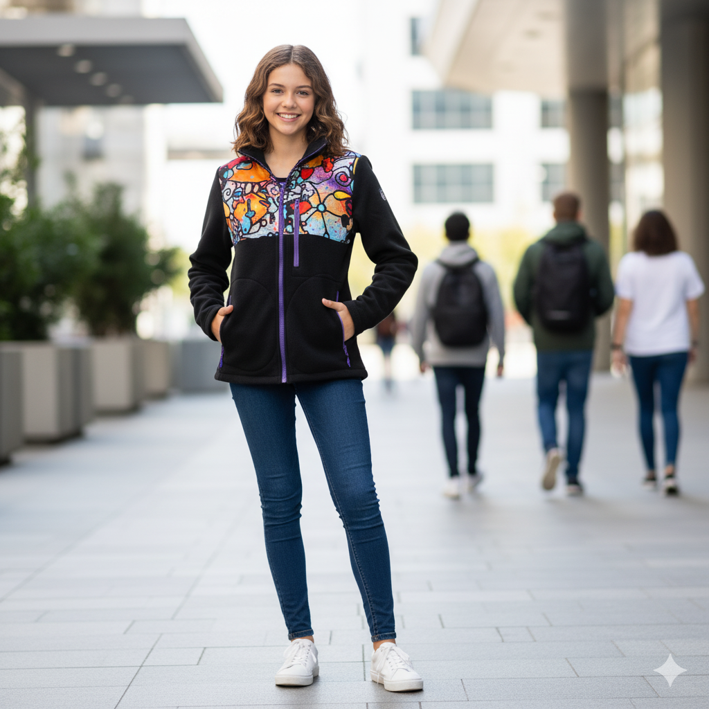 Dámska mikina vyrobená z materiálu fleece (flís) v kombinácii softshell.