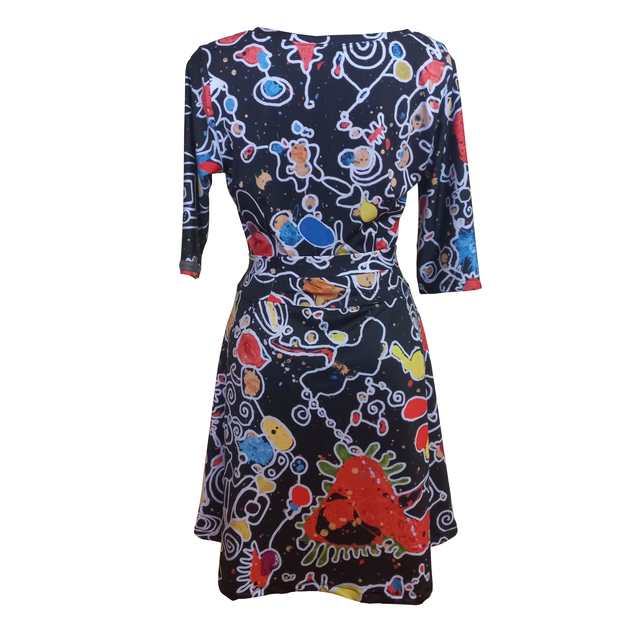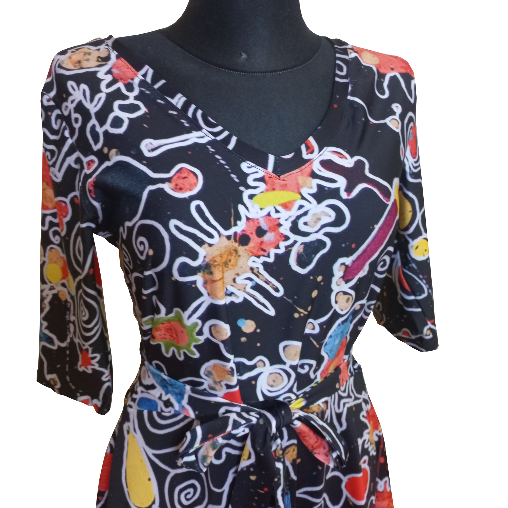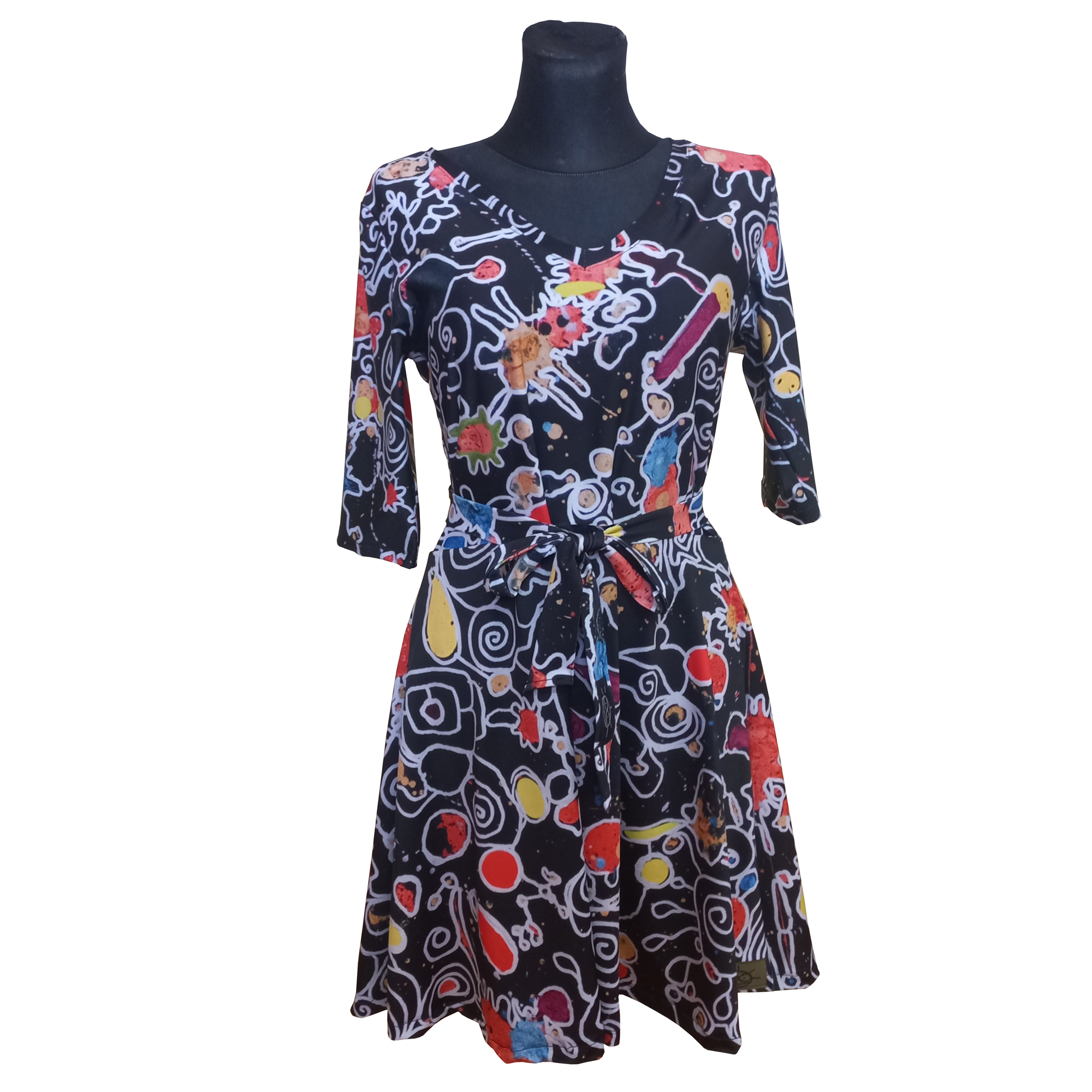 Zažite vášeň a originalitu v šatách z nekrčivého úpletu s dlhým rukávom a krátkou sukňou. Ich vzor vám dodá energiu a farby, ktoré tancujú, vytvoria váš vlastný svet fantázie.